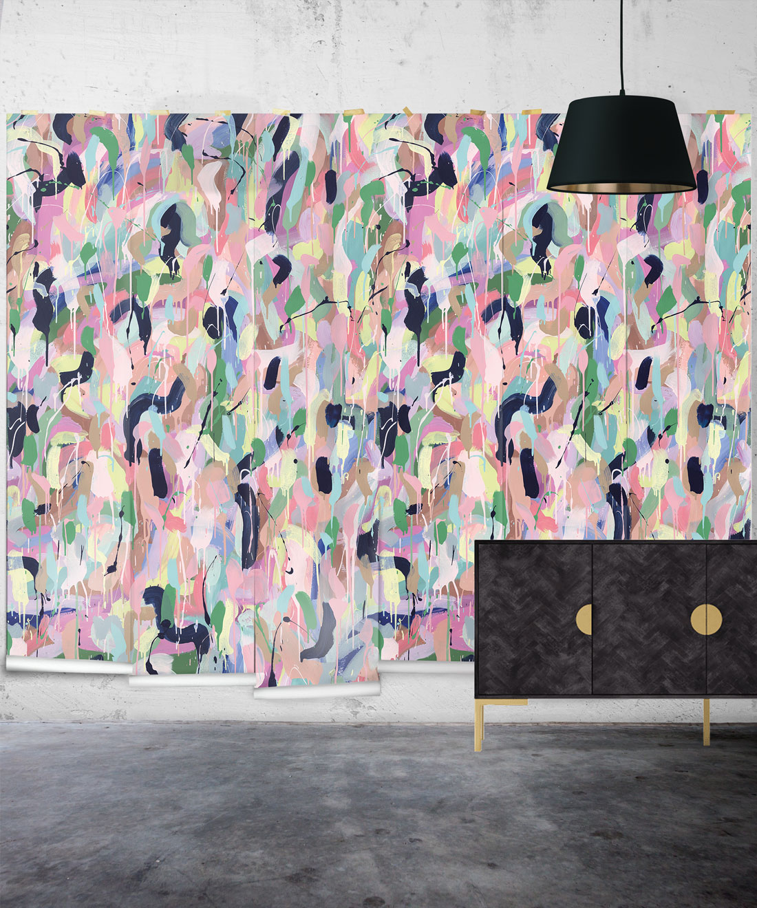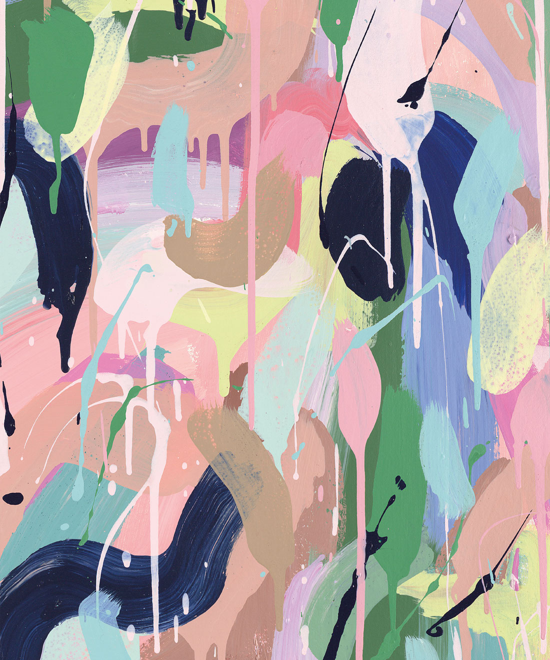 Tiff Manuell is an artist and designer from Adelaide, South Australia who is known for her signature style of colourful art pieces. They are rich with textures using various painting techniques and brushes. Tiff often uses drip-style painting to add a layer of depth to many of her designs. Her most popular designs feature abstract expressionistic artworks brought to life with acrylics on artistic canvas. In addition to her wallpaper collection with Milton & King, her designs can be found on a wide array of products such as bags, clothing, greeting cards and accessories.