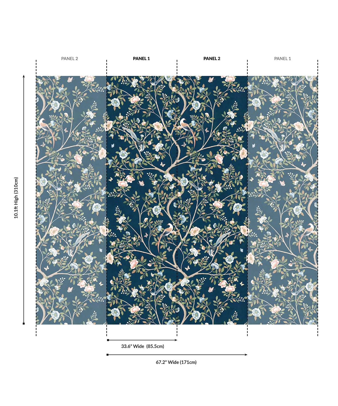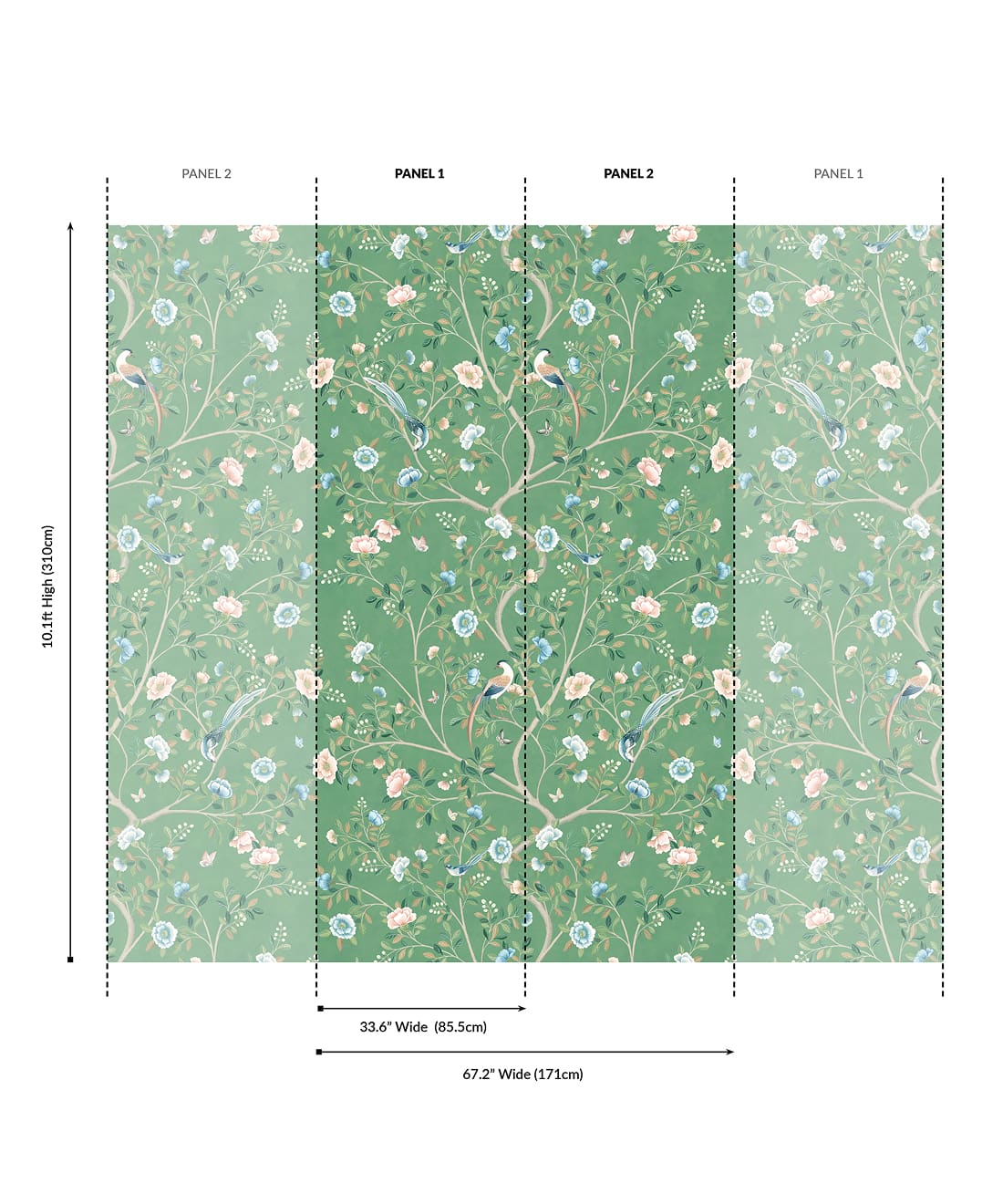 Designed as panels that are 33.6″ (85.5cm) wide x 10.1ft (310cm) high.