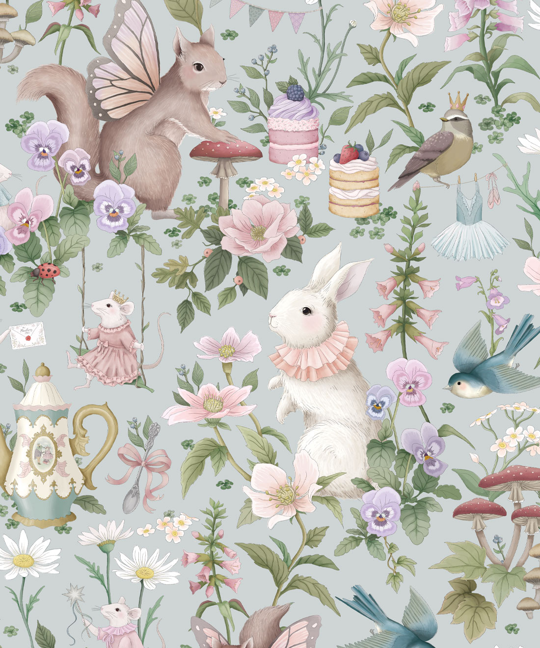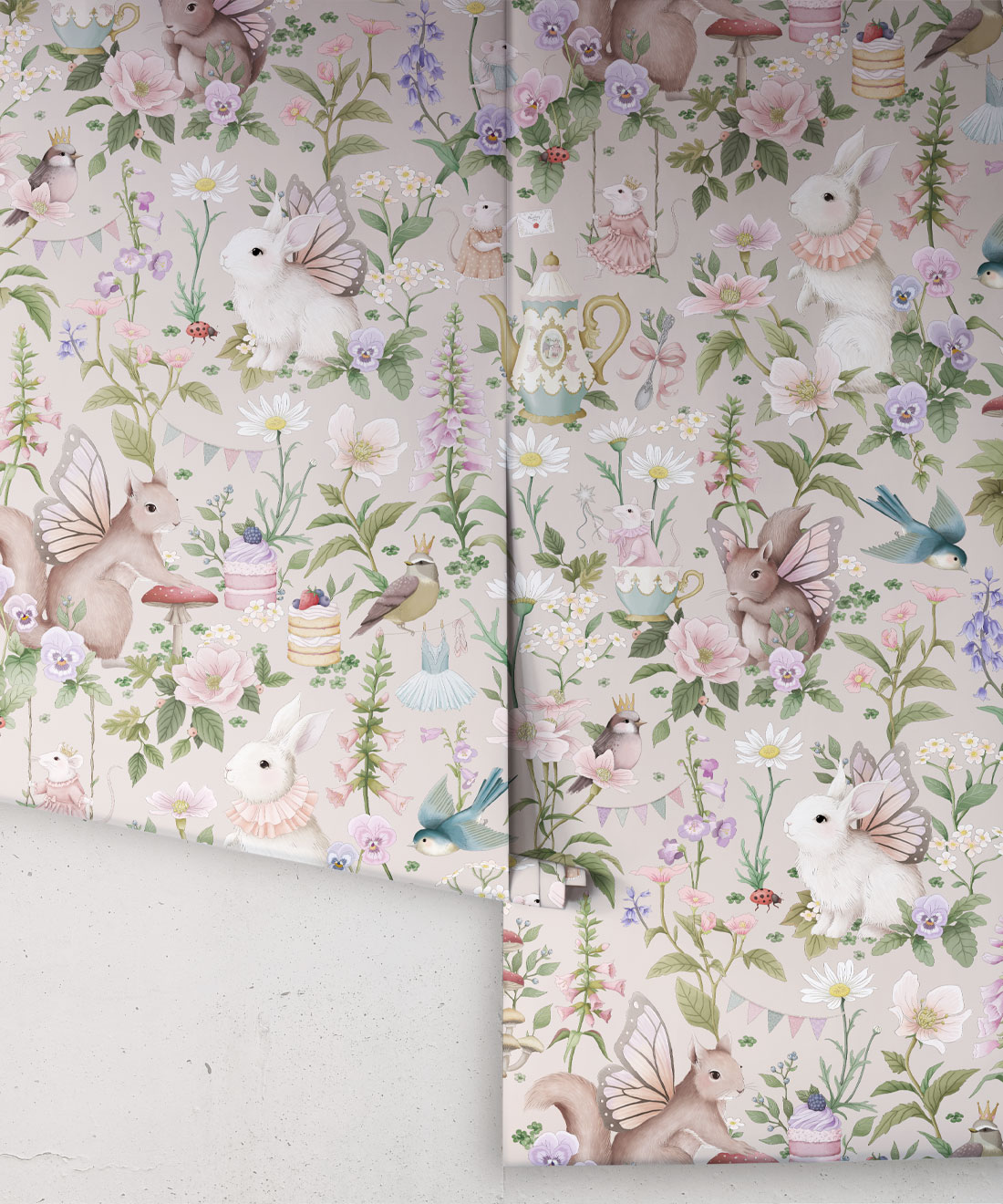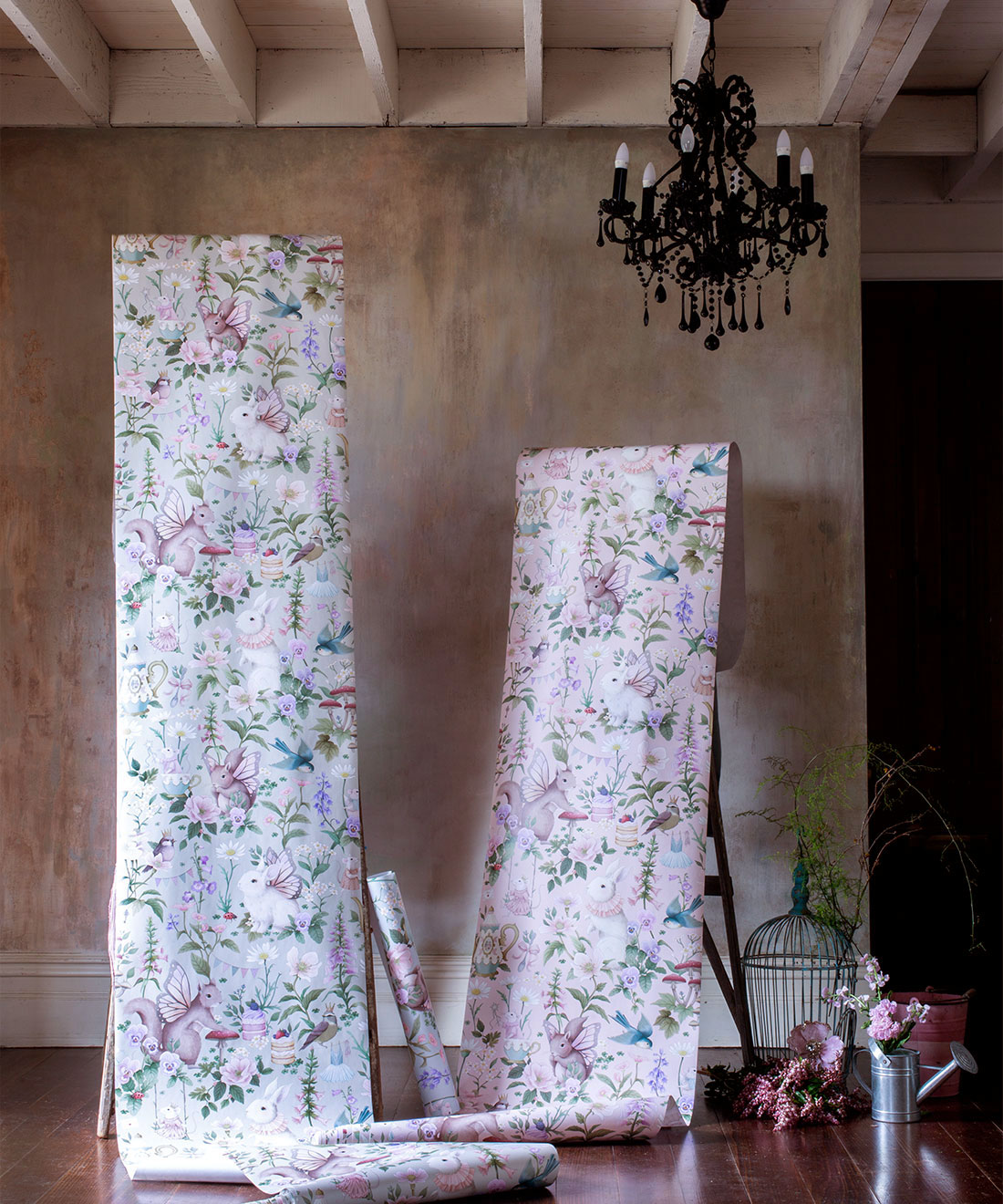 Welcome to Fleur Harris’s Garden Party, where imagination soars, kindness reigns and hearts big and small delight in wonder. Set in the shelter of a woodland garden, the Garden Party Wallpaper features magical creatures preparing for a tea party to celebrate the wonders of nature, life, love and friendship. Inspired by the magic of imagination, this enchanting collection is abundant in delightful details. The beautifully curated colour palette fuses soft pastels with lush greens and neutrals while the vast range of hues in the artwork give it broad appeal and make it effortless to style.