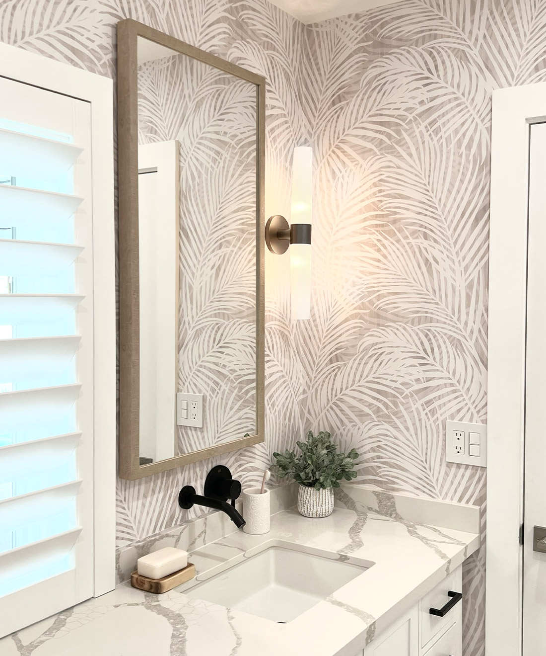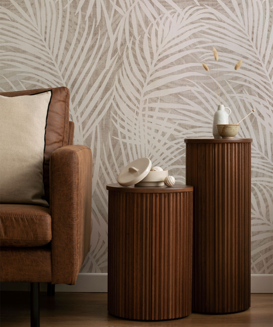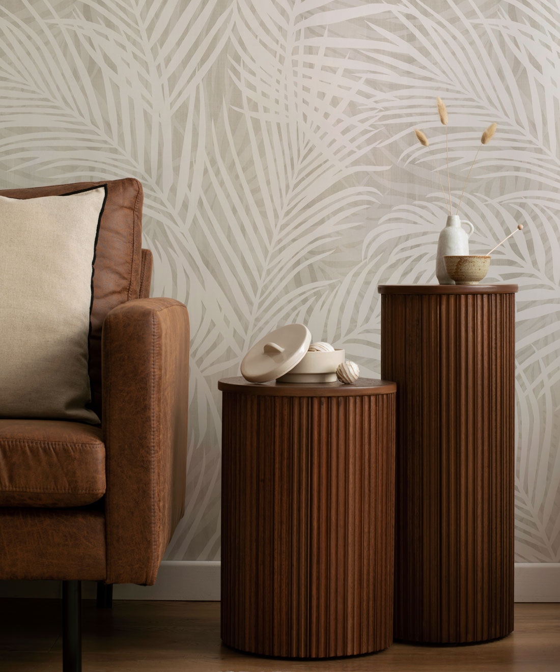 Transform your space into a serene sanctuary with the Laguna Palms wallpaper from La Semilla Casa. This large tropical pattern, adorned with muted colours, exudes a spa-like tranquility. Let the gentle sway of palms create a peaceful retreat, inviting a tranquil and sophisticated ambiance into your surroundings.