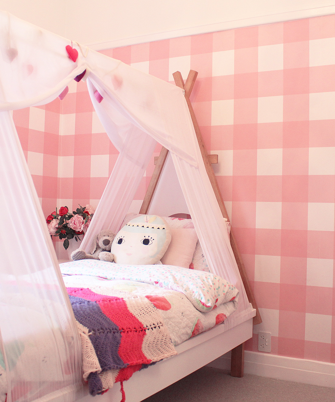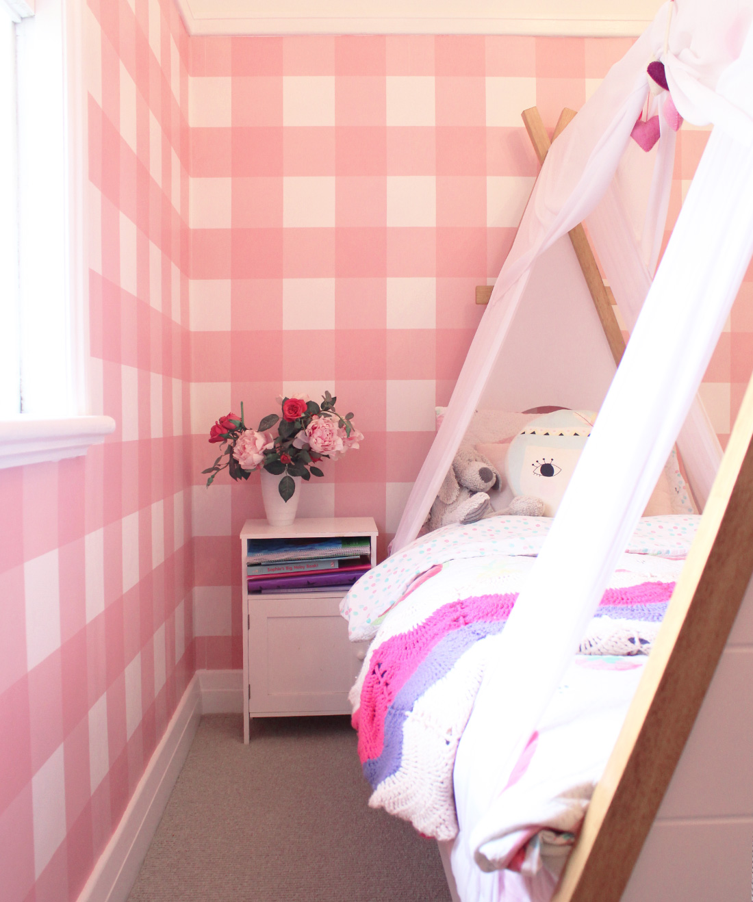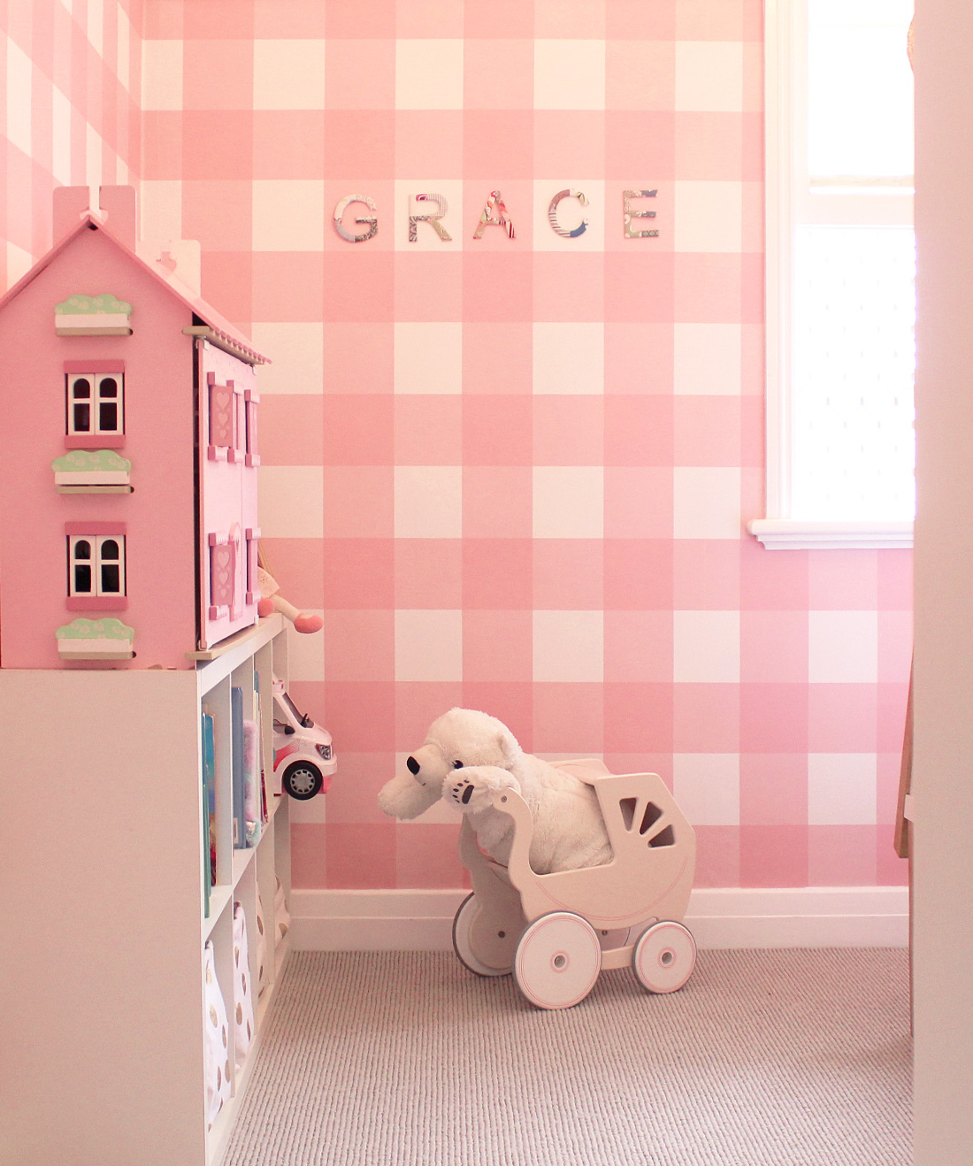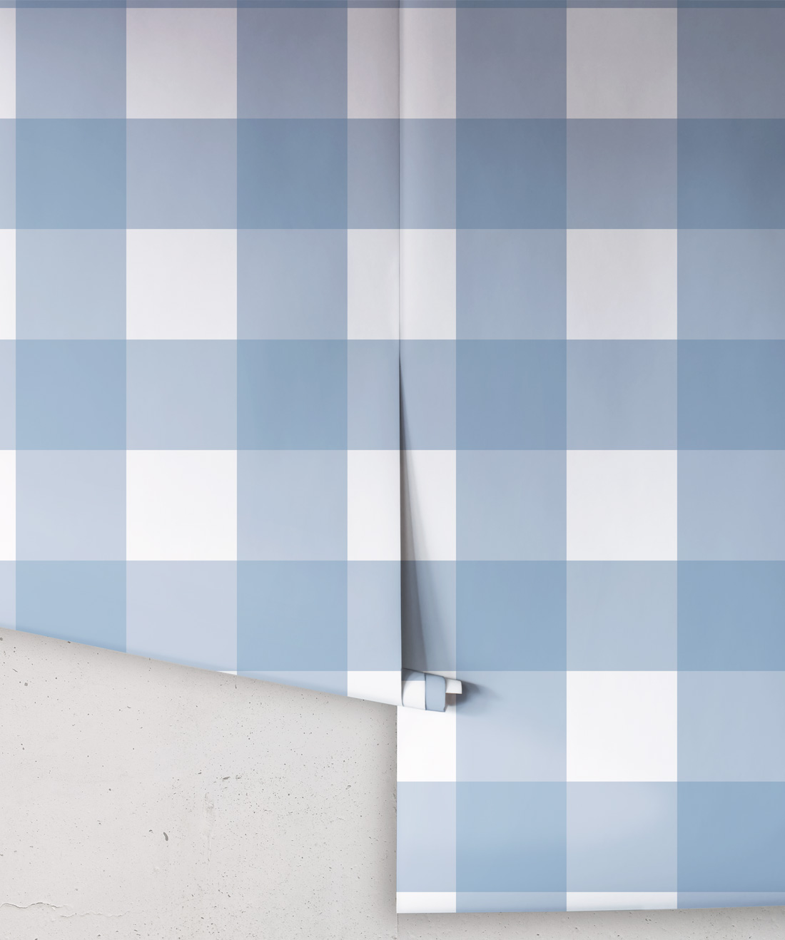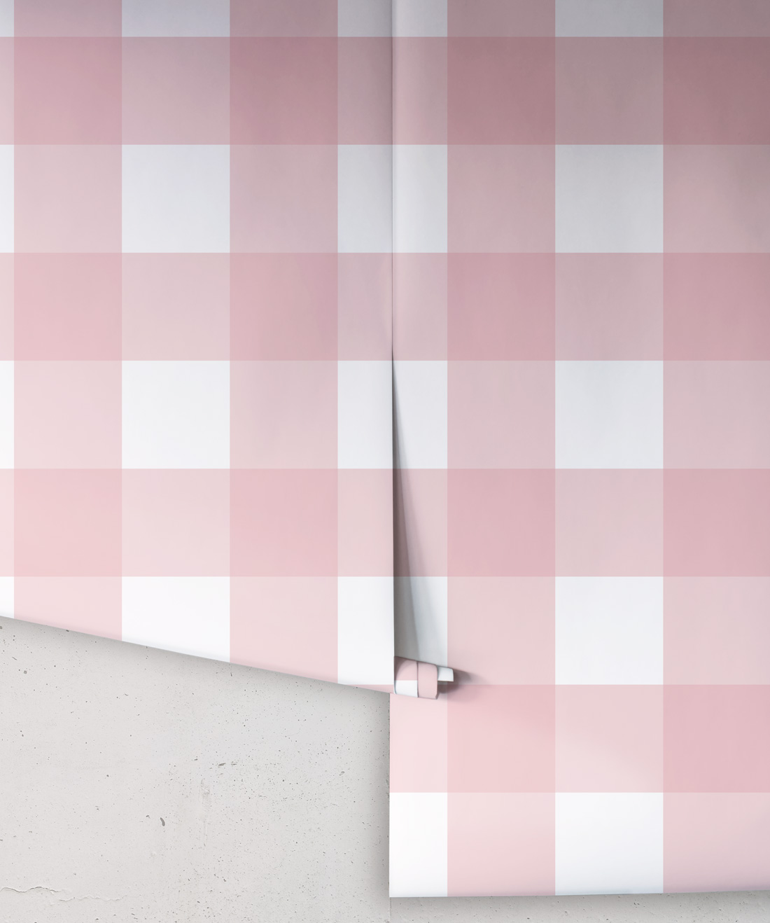 Mel’s Buffalo Check Wallpaper is a plaid style design featuring large blocks formed by intersecting bands of colour. The style was made famous in the wild west because of the popular warm fabrics from Scotland that were traded with Native American tribes. It eventually became synonymous with hard-wearing, durable clothing and lumberjacks like Paul Bunyan. In more modern times, the flannel style has become popular in haute couture. The plaid design also makes for a versatile wallpaper style using a cross-checkered pattern in pink, blue, grey, green and black & white colour options. It’s a perfect addition to bedrooms and nurseries and is suited for both masculine and feminine spaces. It has a lovely, simple yet rustic appeal.