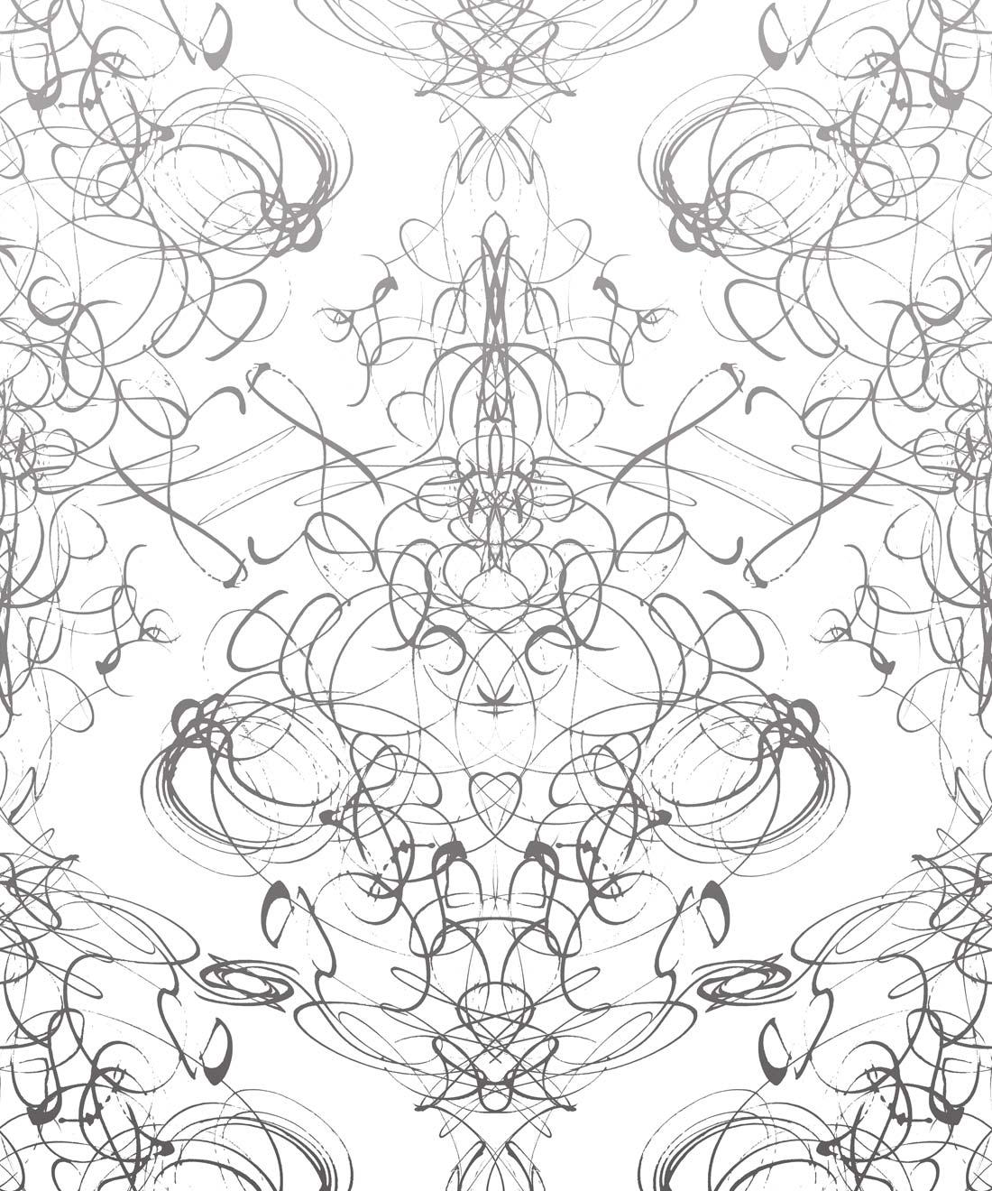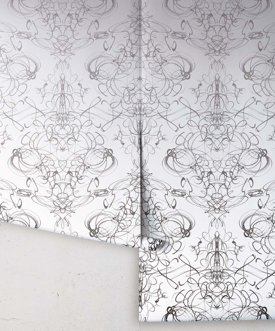 Menna is a contemporary wallpaper design that draws its inspiration from the art of ancient calligraphers. Their bamboo pen and ink marks swirl across the surface to create this stunning repeat. This design gets lighter towards the top, adding a feeling of height to a space.