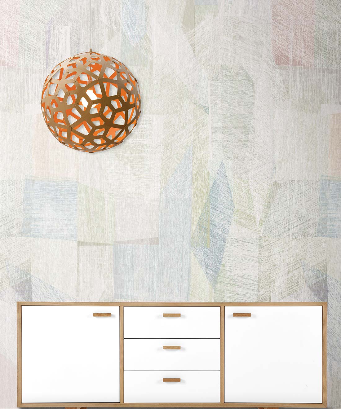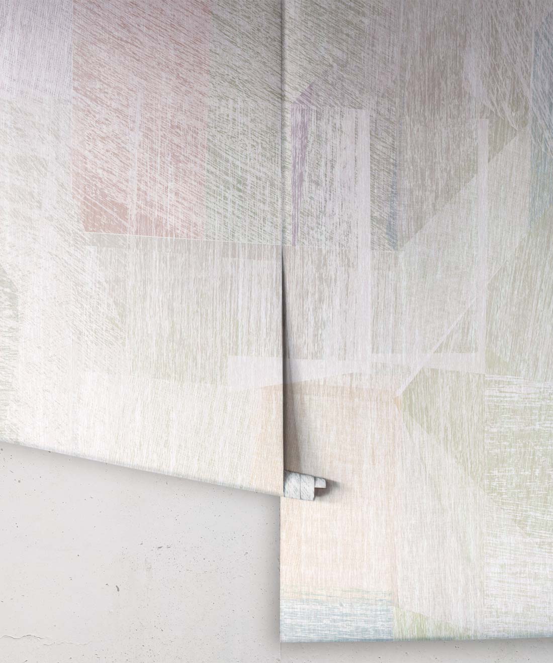Refraction wallpaper features abstract geometric shapes in soft greys, pale golds, pinks and mauve. The result is a subtle, neutral and unobtrusive wallpaper offering a timeless elegance to any space, reflecting just a hint of colour.
