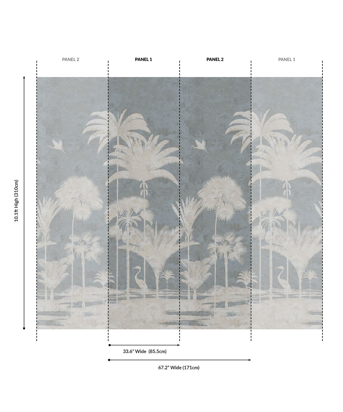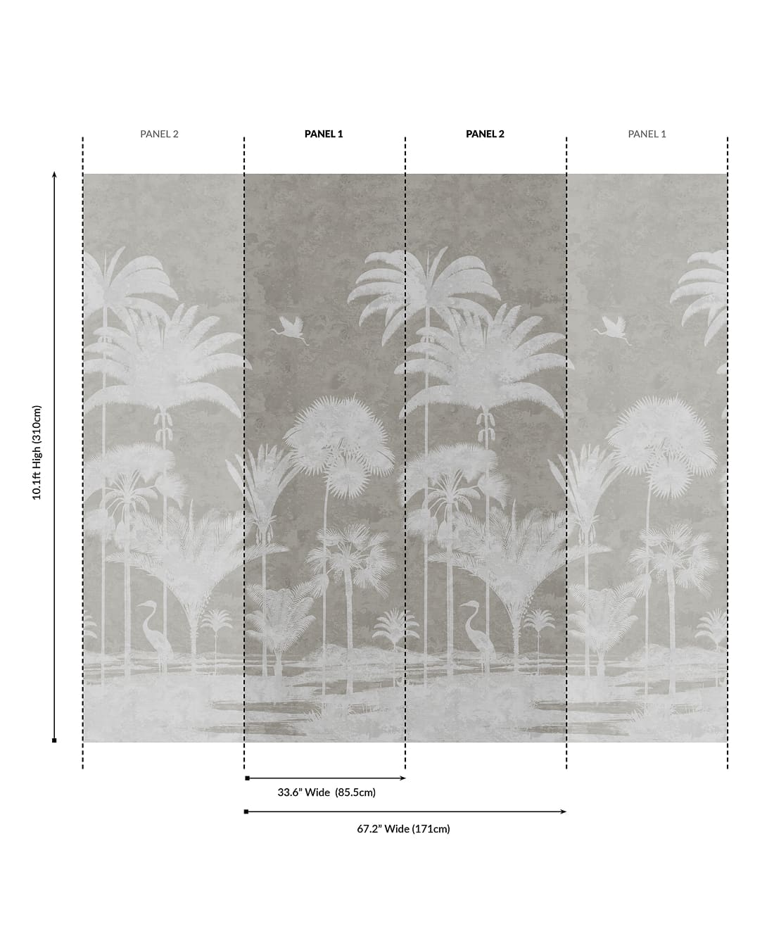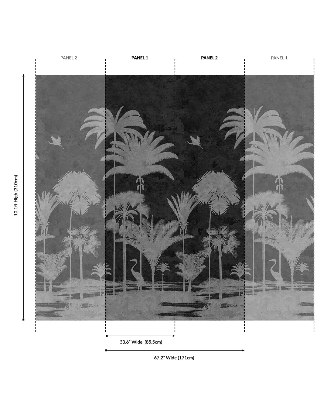 The Shadow Palms Grasscloth Mural captures the stunning silhouettes of an early morning in a tropical haven. All the colour and detail of these lush landscapes has been removed, leaving simple shadows that reflect the excitement and beauty of sunrise over a tropical landscape. The combination of texture and simple forms combine to add a sense of depth and intrigue, allowing this design to blend seamlessly with a range of interior styles, whether modern and edgy, or refined and timeless.
