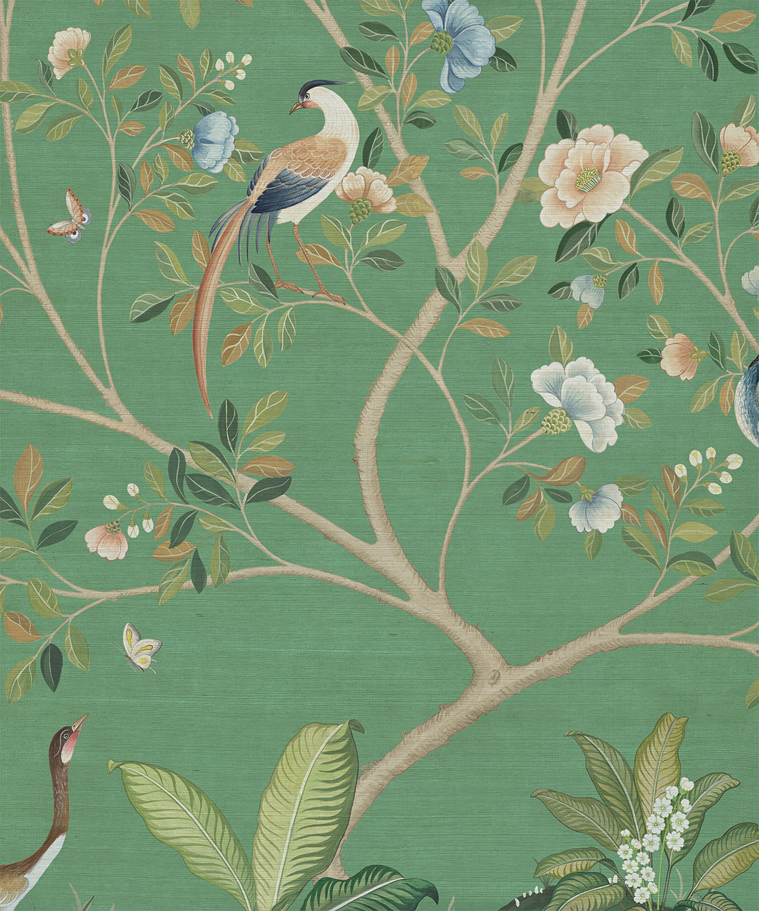 The Spring Landscape Mural from Bethany Linz is a Chinoiserie-style design originally hand-painted in gouache on stone henge paper. Inspired by a commissioned piece, this mural gave the artist the opportunity to create a vibrant botanical scene featuring birds, butterflies, and flowering trees. The design is available as a four-panel composition, sold either as a full set or as individual panels, and captures the height of spring when nature is alive with movement and bloom. This graceful mural offers a whimsical and floral backdrop, perfect for bedrooms, open living spaces, or children’s playrooms.