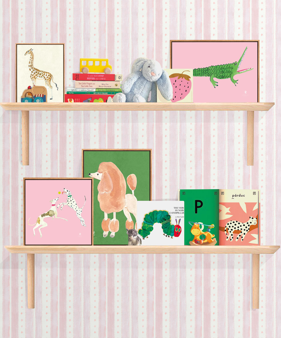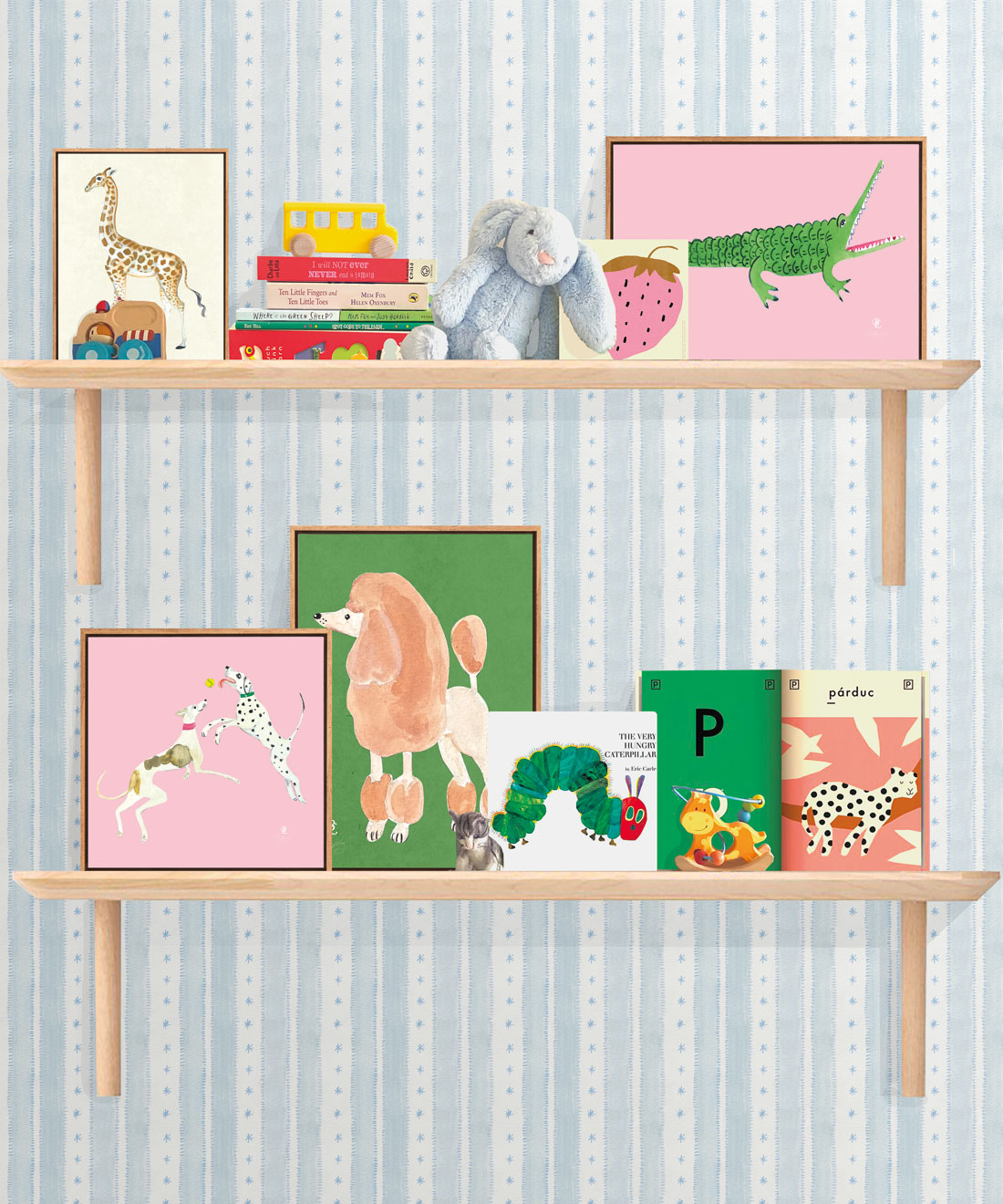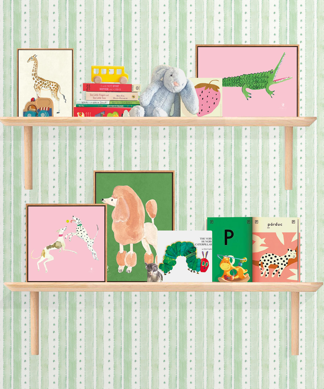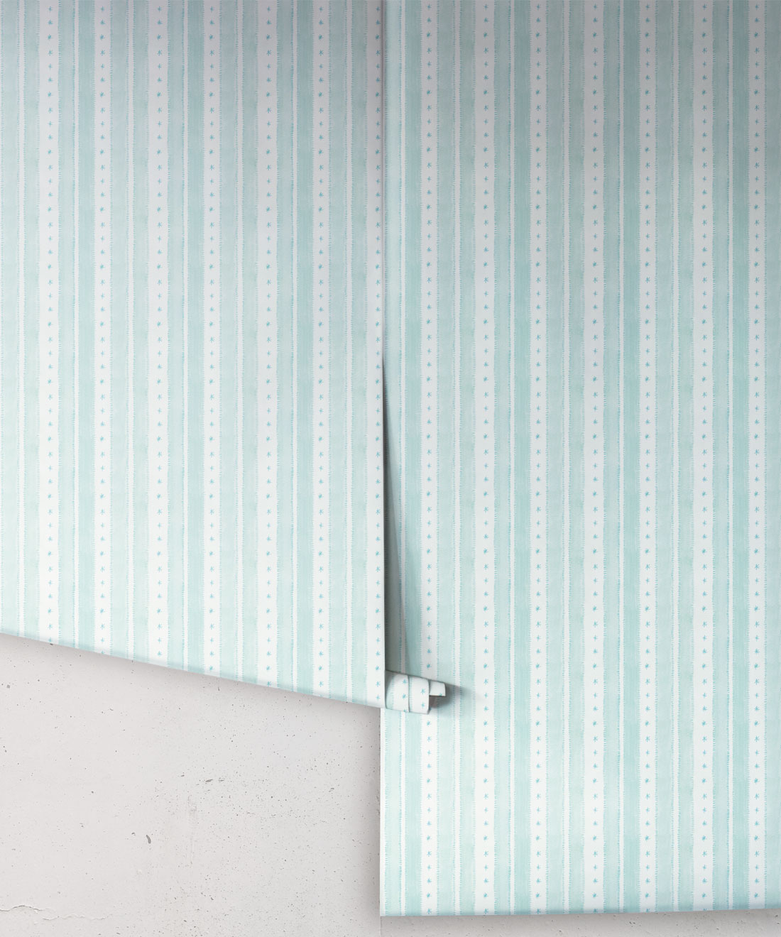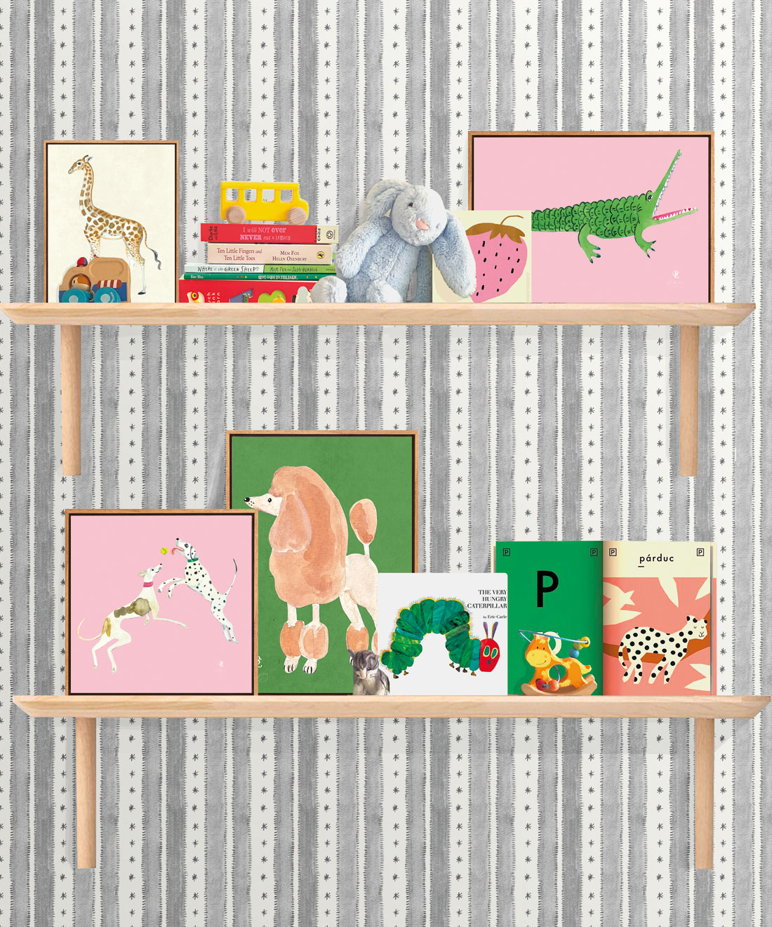 The Star Stripe Wallpaper design features a painterly pair of stripes and a vertical line of stars separating each pair. The twinkling stars add so much personality to what otherwise would be just a plain striped wallpaper design. The painterly aspect lends itself to kids rooms but it also has a fun aspect that is truly versatile in its application. It comes in 6 colourways including Beige, Charcoal, Dusty Blue, Green, Pink and Turquoise.