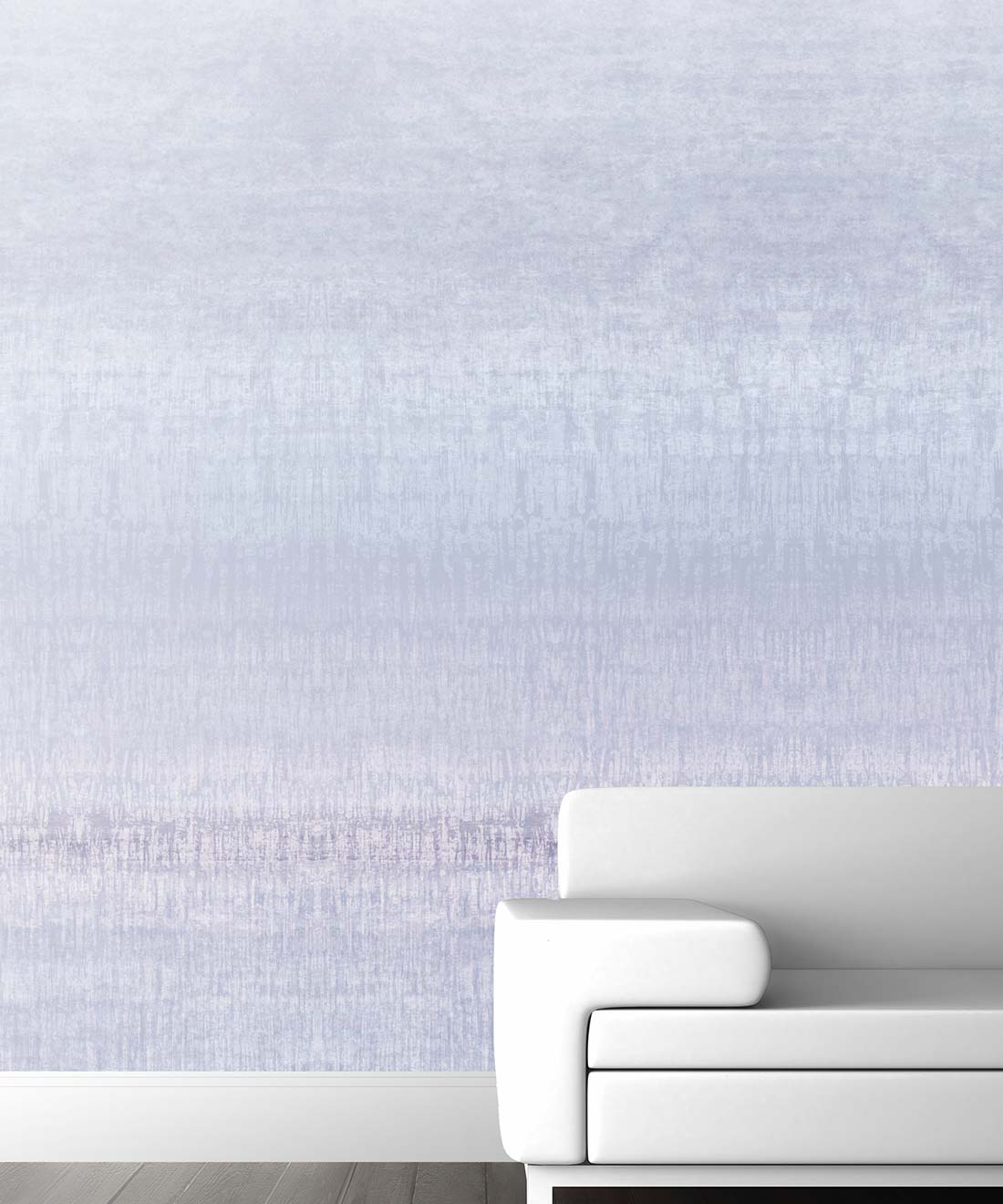Tourmaline wallpaper gives the illusion of a shimmering horizon, enhancing natural light in its soft hues. Available in green and lilac, this abstract neutral wallpaper design becomes lighter towards the top, adding a feeling of height to a space.