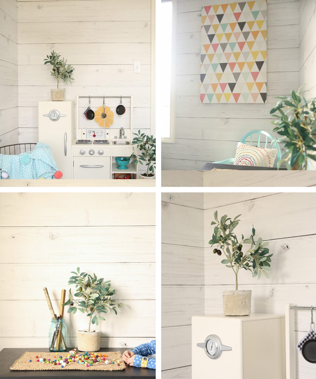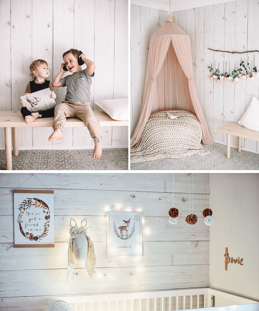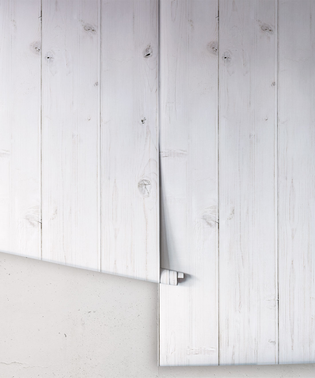 This highly realistic shiplap panelling wallpaper is extremely versatile and can be used in a number of different ways, depending on the needs of the space. Its versatility is its strength, adding warmth and rustic character to what might be a more austere modern setting or, conversely, because it has a very clean line, can be used to make a historical setting feel more contemporary. The texture of the wood wallpaper is subtle and warm. It’s whitewashed so that some of the grain shows through. In terms of installation, again its versatility is key. Installing your wallpaper as horizontal boards is best to create a space that feels expansive and modern. However, when laid vertically, timber panelling can create the illusion of height.