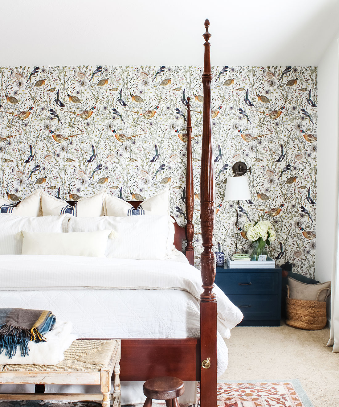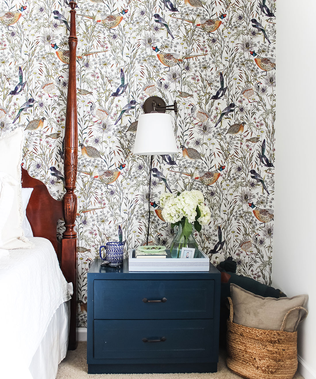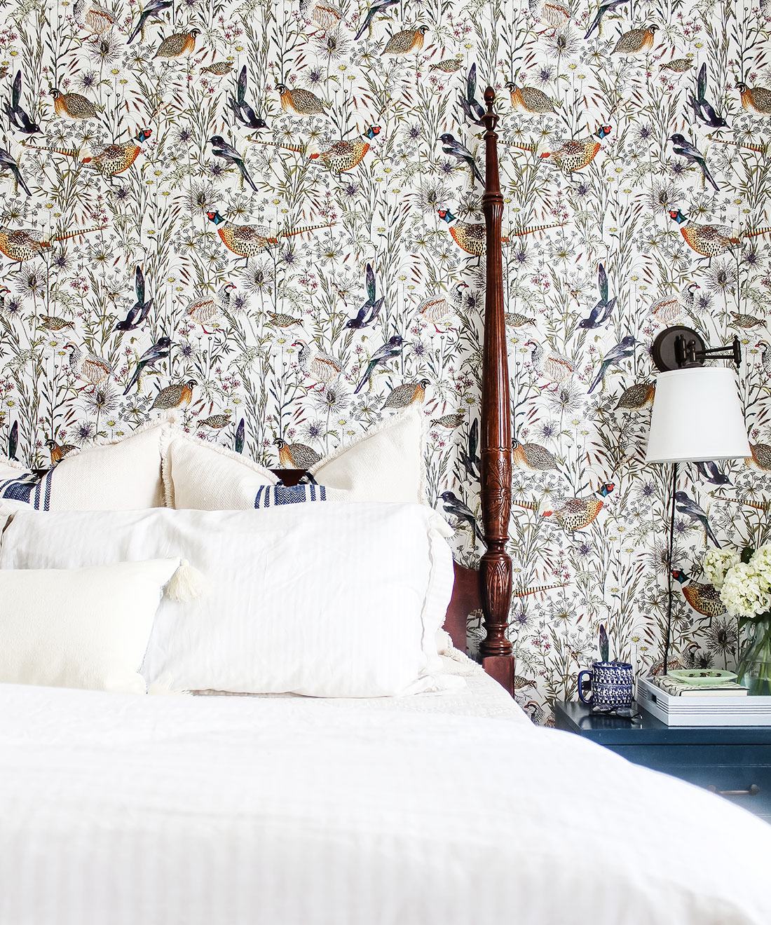 An intricate and lively botanical wallpaper, illustrated by Jacqueline Colley featuring cowslip and daisies in the long grasses of the woodland edge. Birds strut through this english pastoral scene including; a jewelled pheasant and red legged partridge each drawn with stunning detail. A large scale pattern that would look stunning in any environment. Manufactured on a hard- wearing non woven, this easy to install wallpaper is ideally suited to both commercial and residential installations.