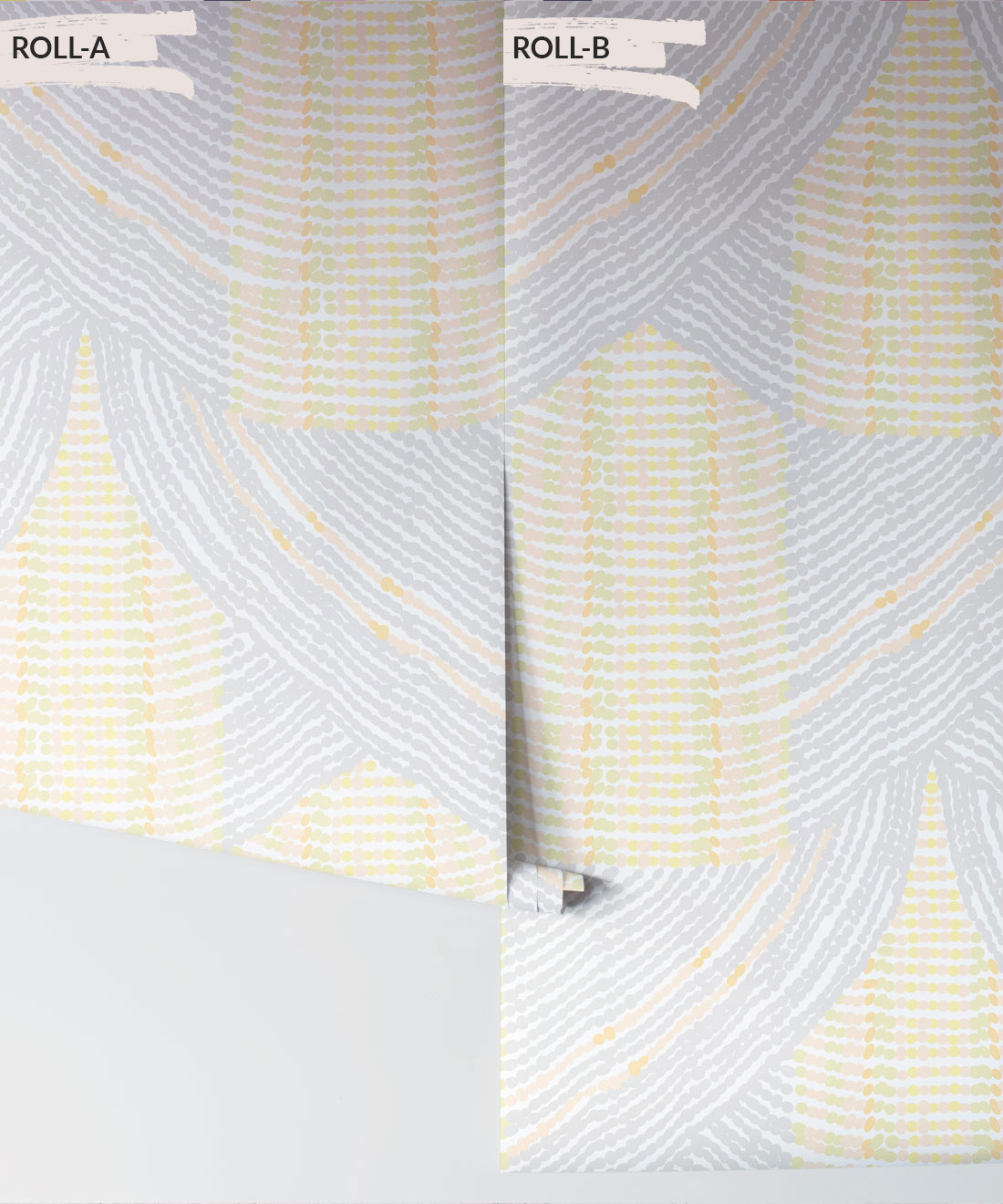 Manufactured as a double width design (set) requiring 2 rolls, A+B to complete the horizontal repeat. One set is equivalent to 133 sq. ft. or (12.3 sq. m.).